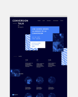 Conception graphique de l'identité visuelle de l'évènement annuel d'AB Tasty, le Conversion Talk. Logotype, site web et communication digitale.