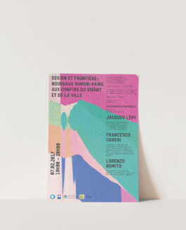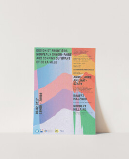 « Design et frontière : nouveaux savoir-faire aux confins du vivant et de la ville » Identité visuelle du cycle de conférences 2017 à l’École nationale supérieure des Arts Décoratifs de Paris. Leporello, affiche et site web.